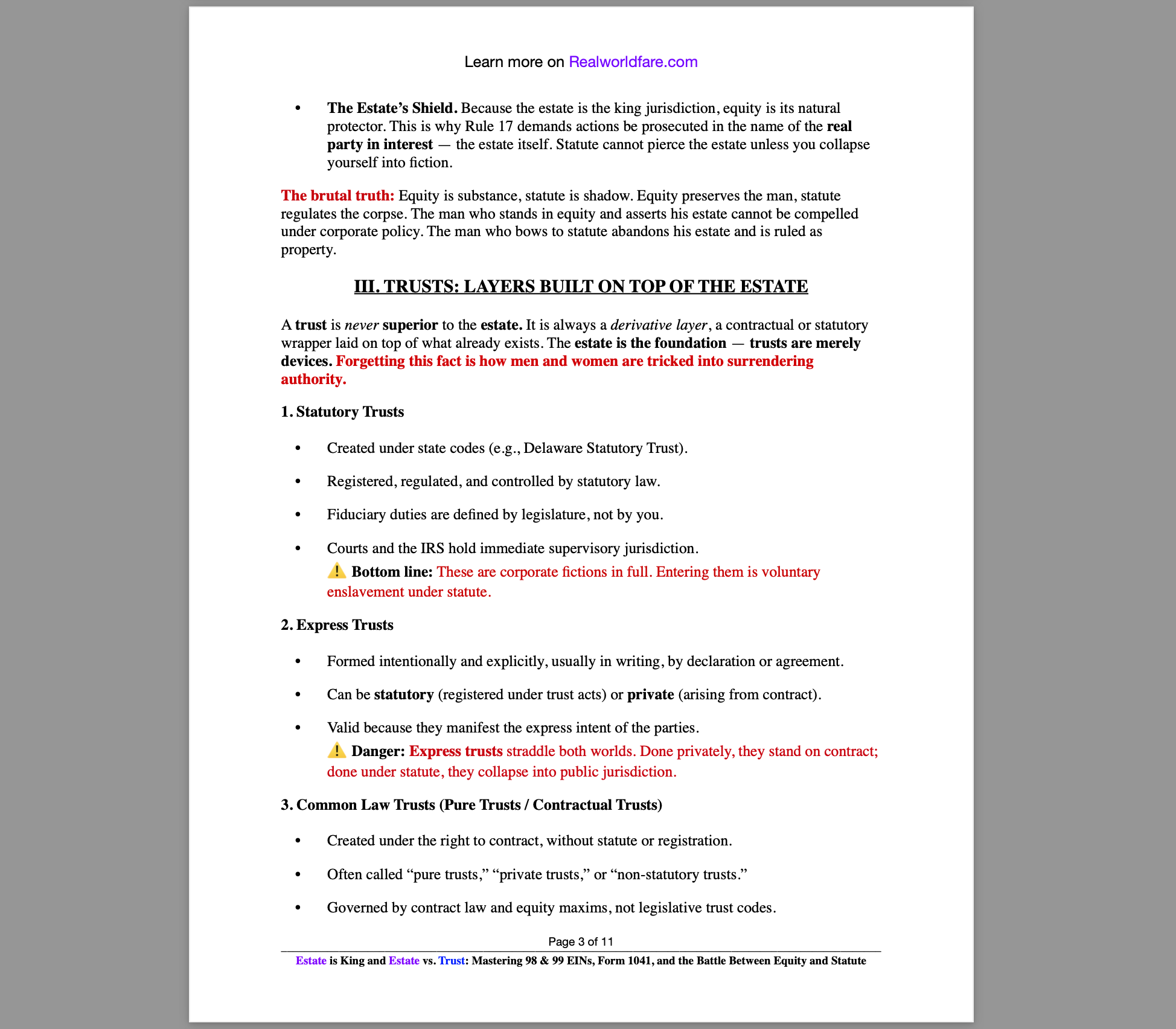 ⚖️ The brutal bottom line: Jurisdiction is never seized — it is always given. This guide shows you how not to give it away. Estate or fiction. Sovereignty or slavery. Remedy or ruin.